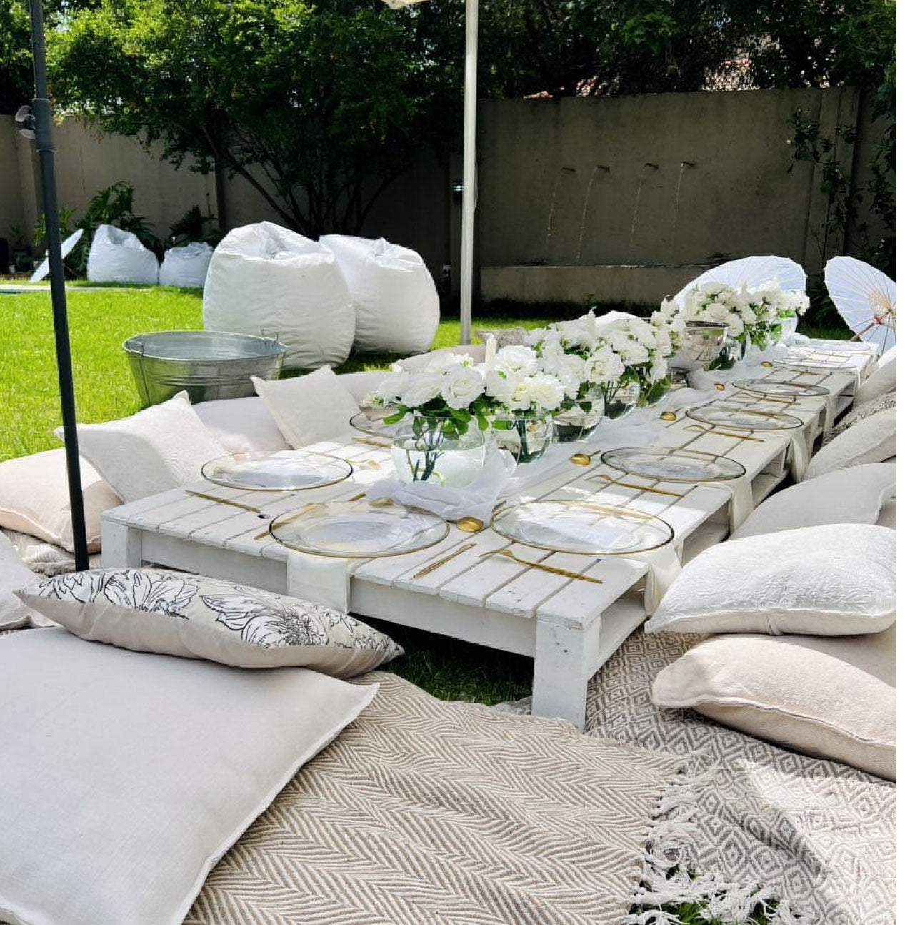 A handcrafted outdoor sofa made in Dubai using responsibly sourced wood. Designed with clean block lines and soft neutral cushions, this piece reflects a considered, sustainable approach to outdoor living.